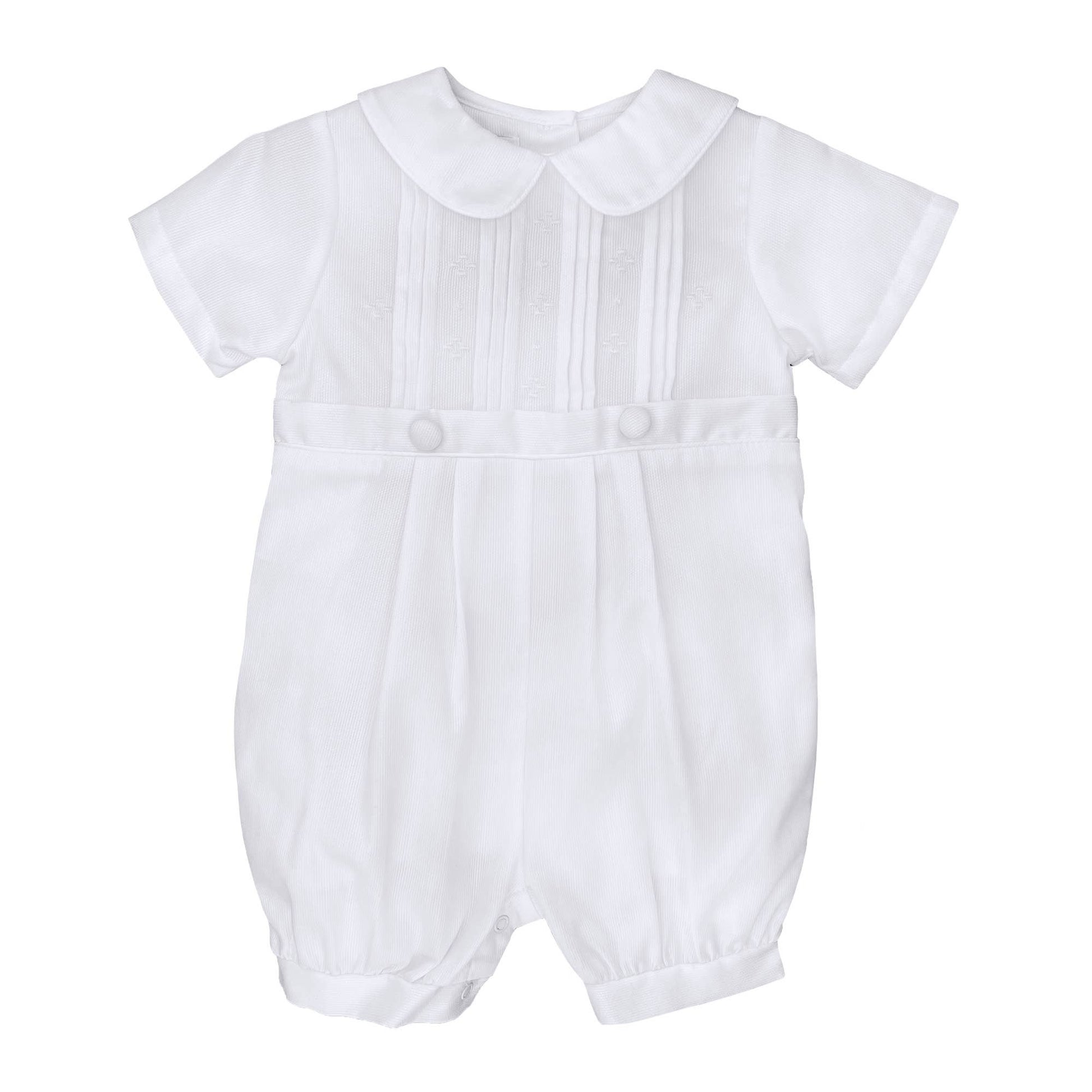 Our white Pique Knicker makes a beautiful baptism or christening out for baby boys.
